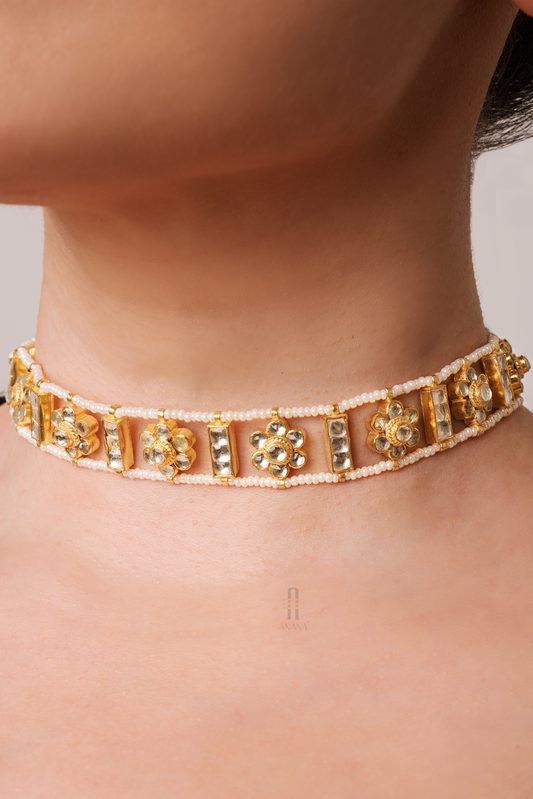 Silver/gold antique finish kundan polki choker necklace set with ghungroo.