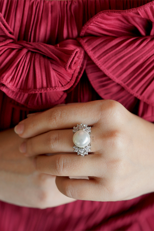 Premium Swarovski zirconia Solitaire ring with real pearl in 925 sterling silver.