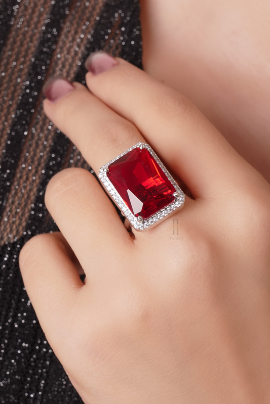Silver/gold antique finish ring with Ruby/Emerald stone.