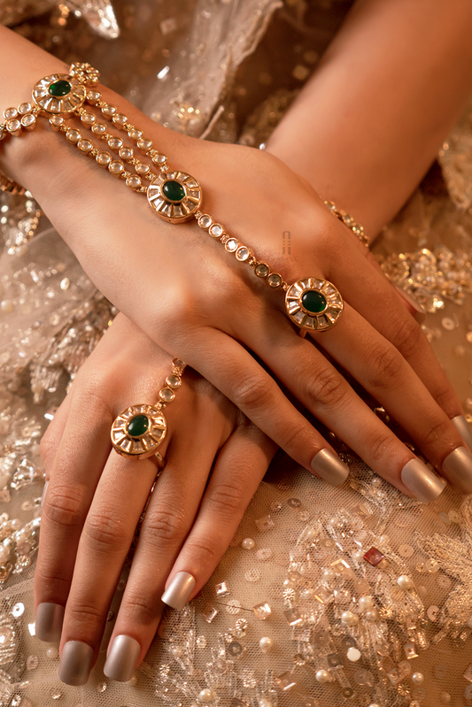 Hand crafted kundan polki matha patti attached with mang tikka.