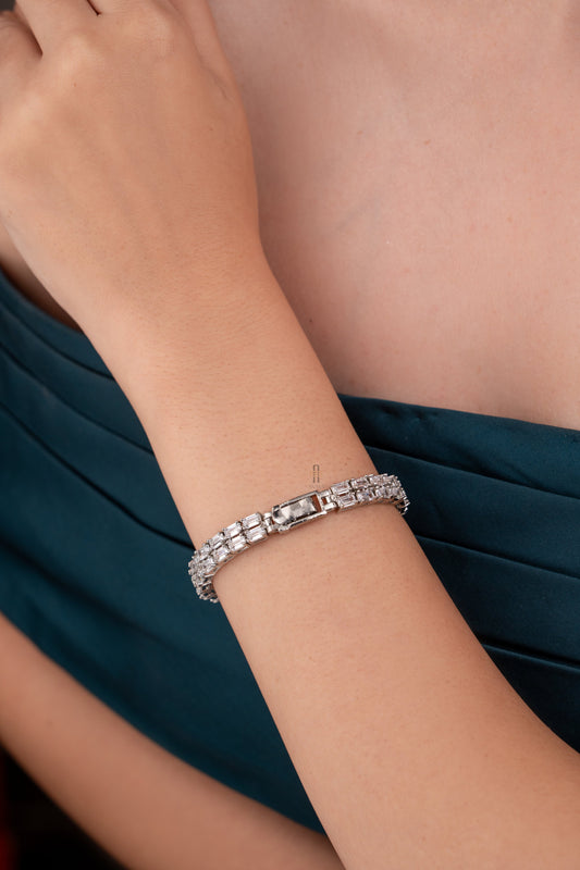 High polish silver tone finish with primum quality zircon tennis bracelet