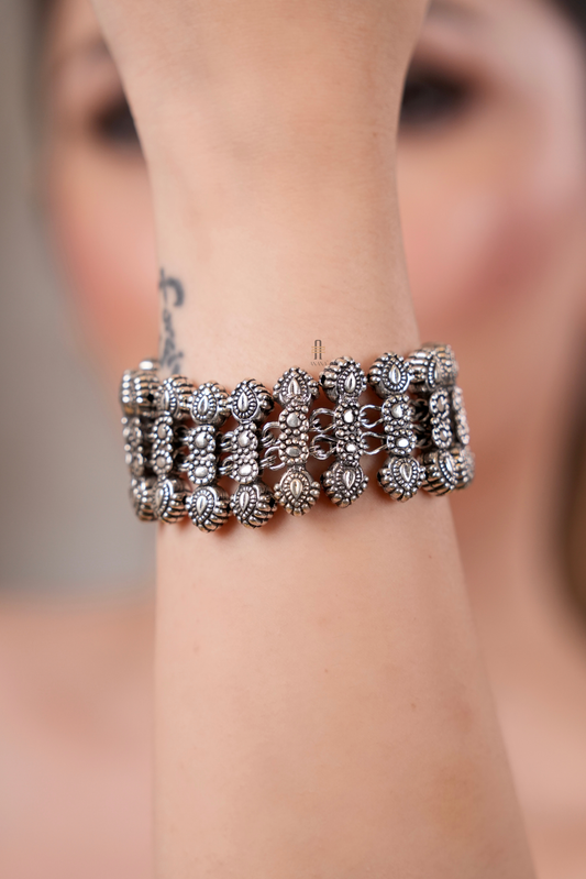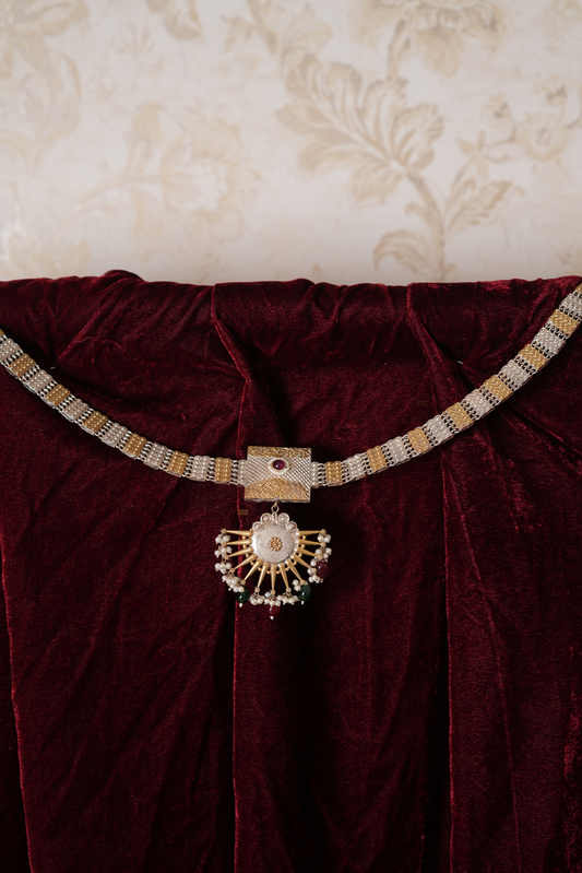 Silver/gold antique finish Kamarbandh with multicolour stones.