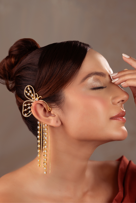 Silver/gold plated ear cuff with zircon butterfly for traditional functions.