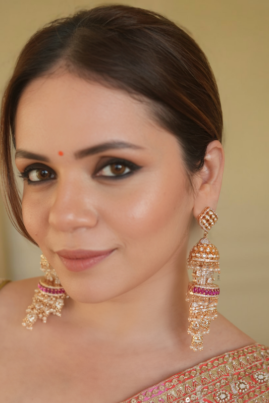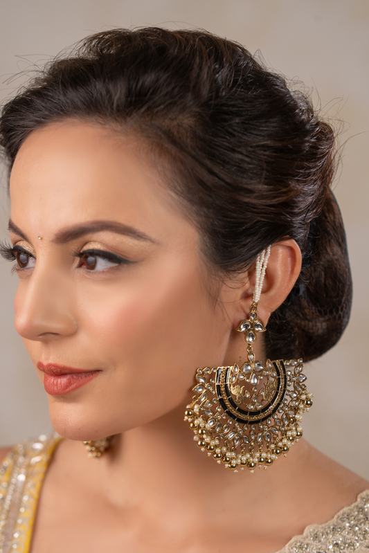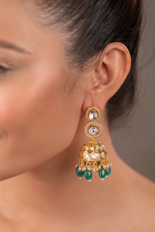 Hand crafted temple gold plated earrings with pachi kundan work.