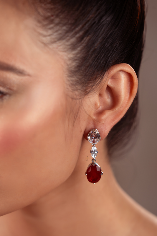 Premium Swarovski zirconia Solitaire drop earrings with ruby/emerald stone in 925 sterling silver.