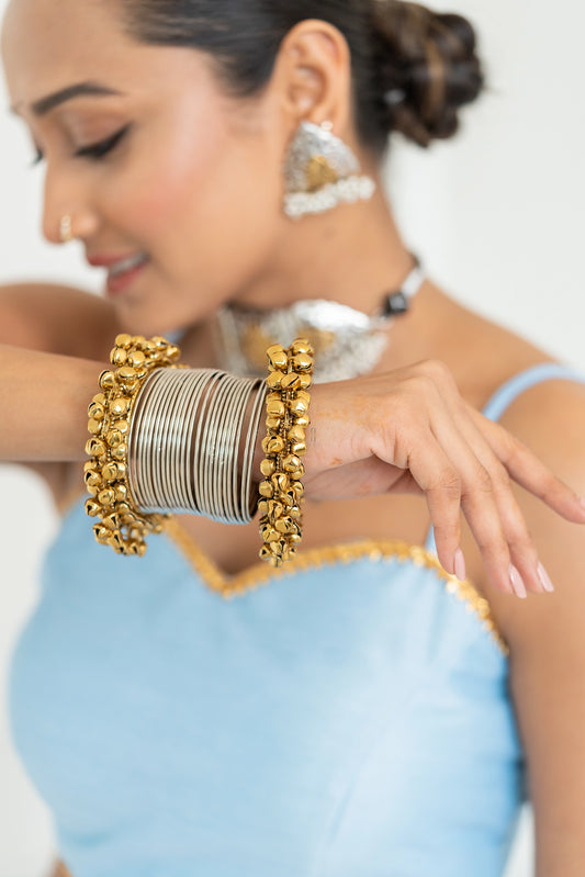Silver antique finish kada bangles with ghungroo.