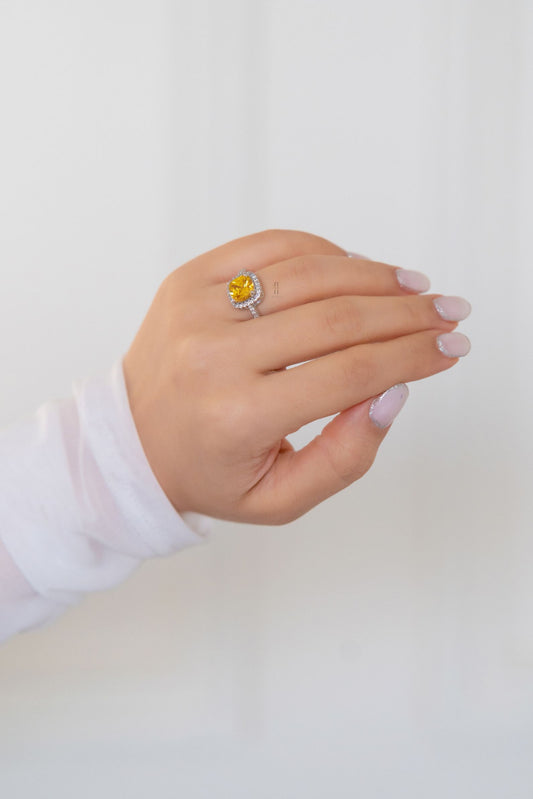 White finish zircon with yellow stone ring.