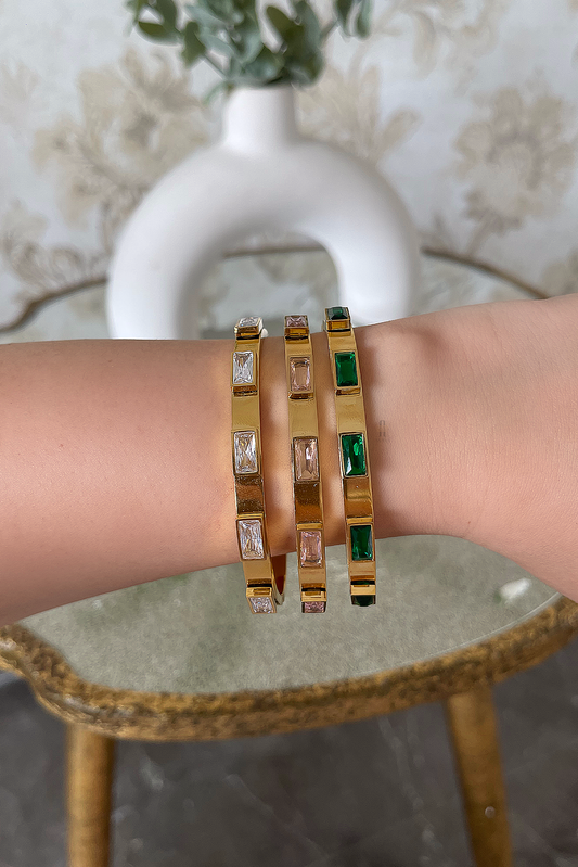 Gold /silver finish cuff bracelet with black blue pink white stones.