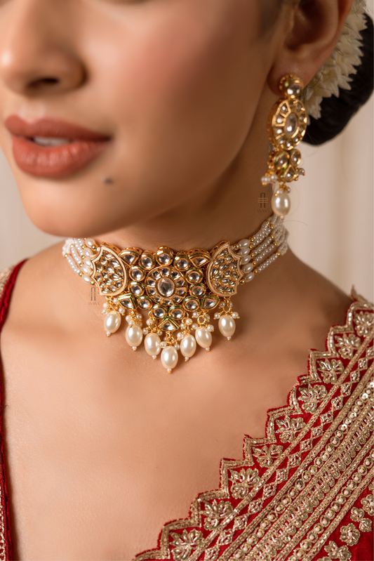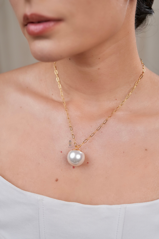 Hand-crafted Pearl pendent necklace with Gold Chain.
