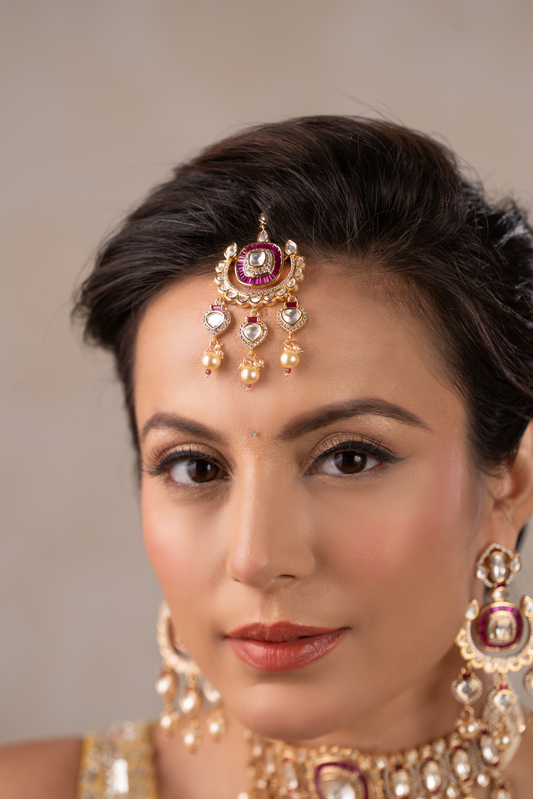 Hand crafted temple gold plated set with pachi kundan work.