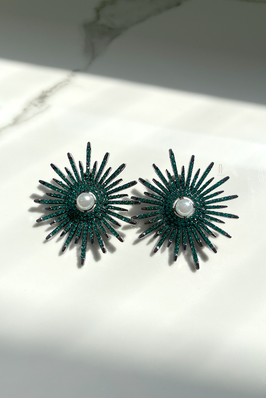 Black rhodium finish Studs earrings with zircon pink, silver, lilac and nude gold color.