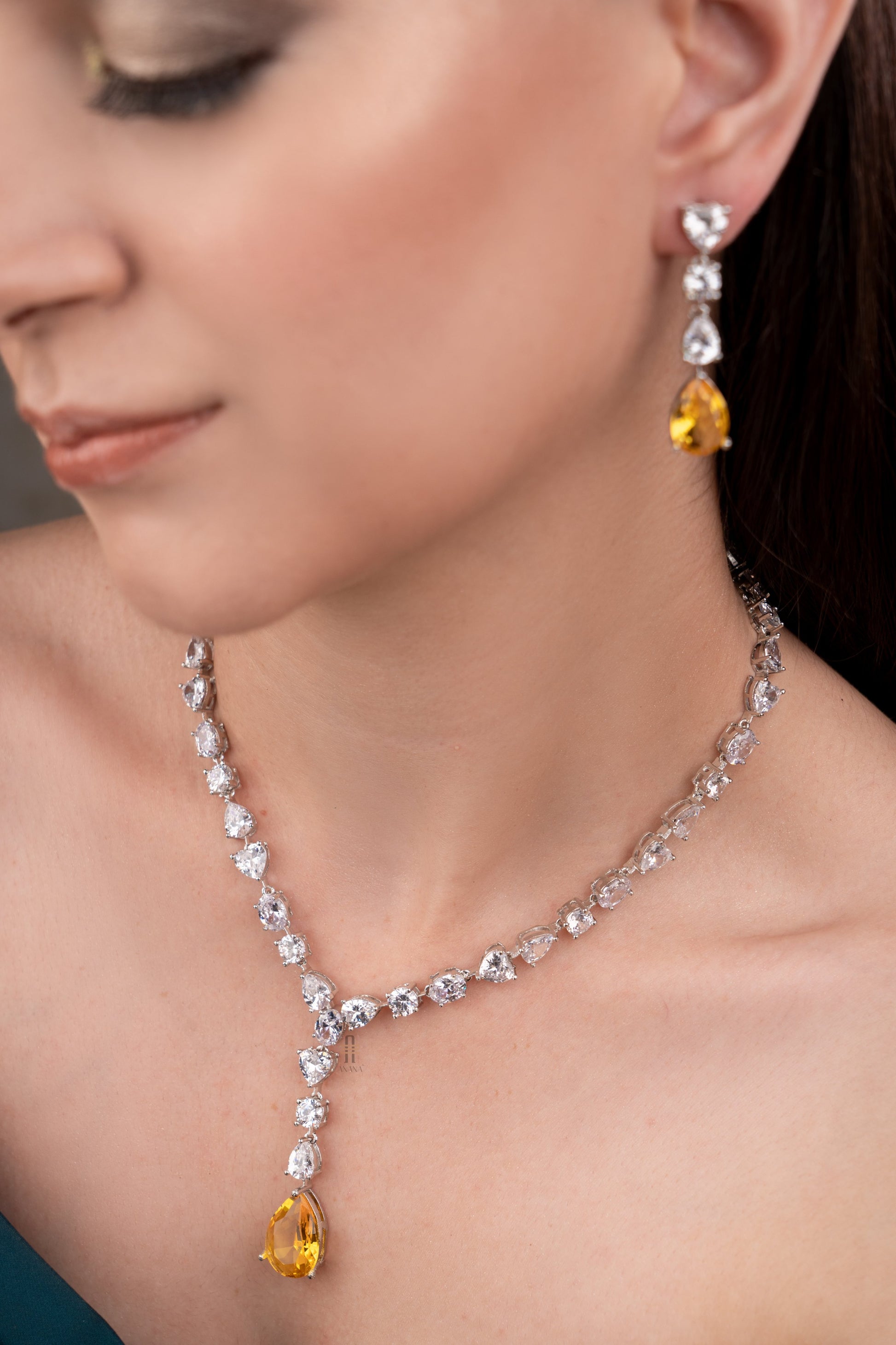 High Polish Silver Tone Finish With Primum Quality Zircon Necklace Set